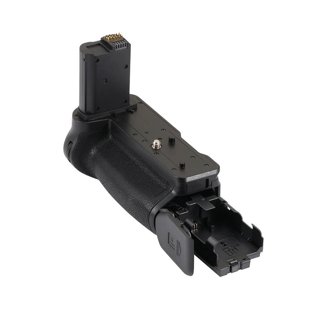 Greppet rymmer två EN-EL15C litiumjonbatterier samtidigt, vilket förlänger kamerans drifttid och gör det möjligt att fotografera längre utan avbrott.