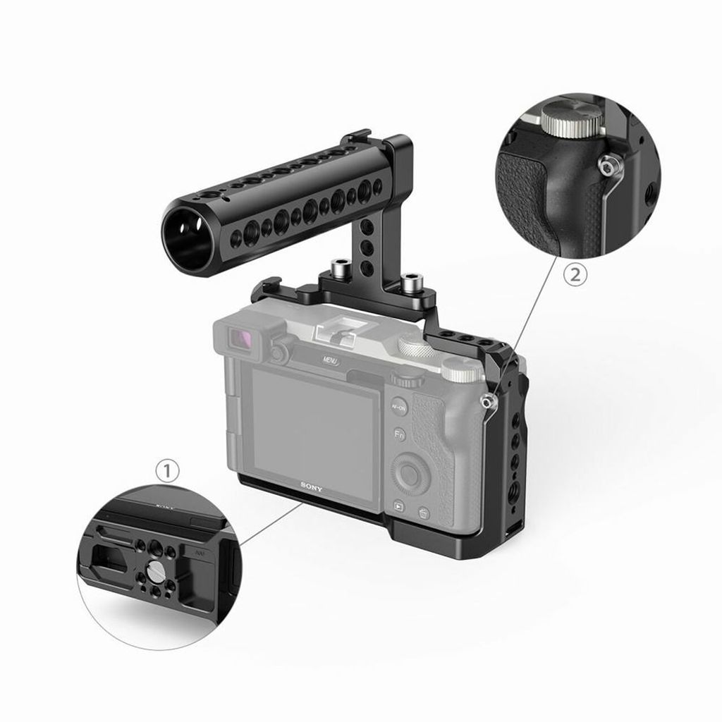 Kit med bur och topphandtag. Specialdesignat för Sony A7C. Perfekt för filmning från låga vinklar.
