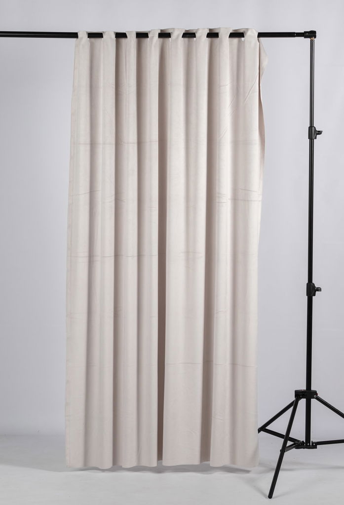 Passar för produktfoto, porträtt, modefotografering mm. Tygdraperiet är 1.5 x 2 meter och hängs upp på bomarm eller bakgrundsstång likt en gardin.