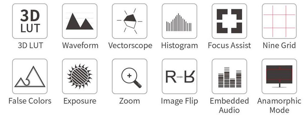 Skärmarna har funtkioner som vågform, vektorgrafik, histogram och anamorft läge.
