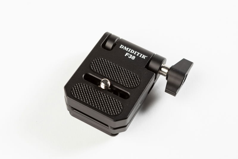 Monteringsplatta med Quick Release som är kompatibel med 38 mm Arca-Swiss standard plattor eller videohuvuden.