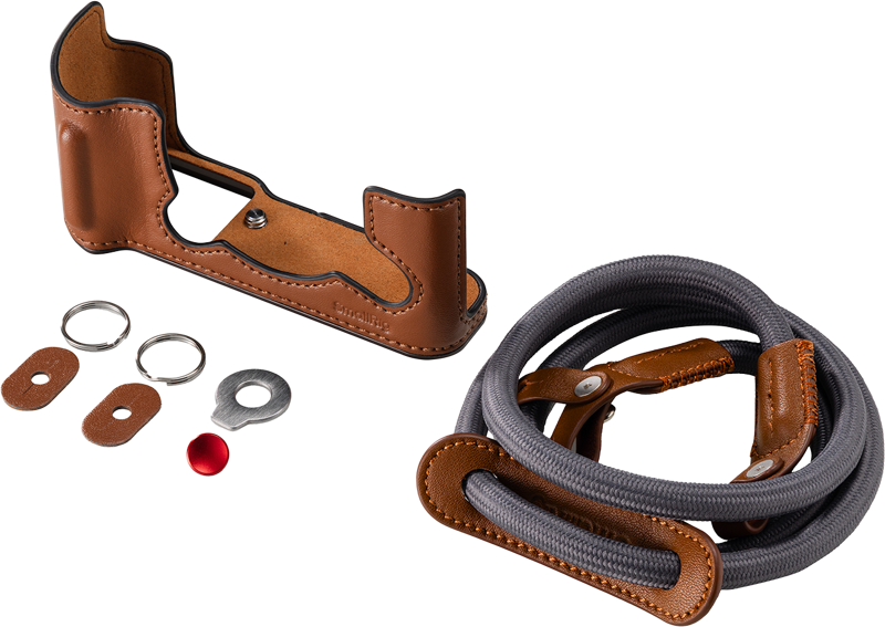 Fodralet är tillverkat i högkvalitativt läder och förstärkt med en inbyggd aluminiumlegerad ram som garanterar en exakt passform. Konstruktionen skyddar effektivt kameran mot stötar, repor och dagligt slitage utan att kompromissa med stil eller grepp.