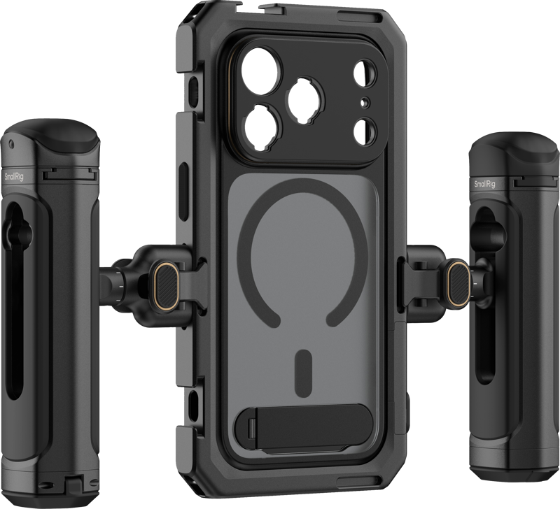 SmallRig 5540 Mobile Dual Handheld Kit är ett professionellt riggpaket för iPhone 17 Pro, designat för kreatörer som vill ta mobilfilmandet till nästa nivå. Med robust metallkonstruktion, flexibla monteringsmöjligheter och dubbla ergonomiska handtag ger kitet både skydd, stabilitet och kreativ frihet.