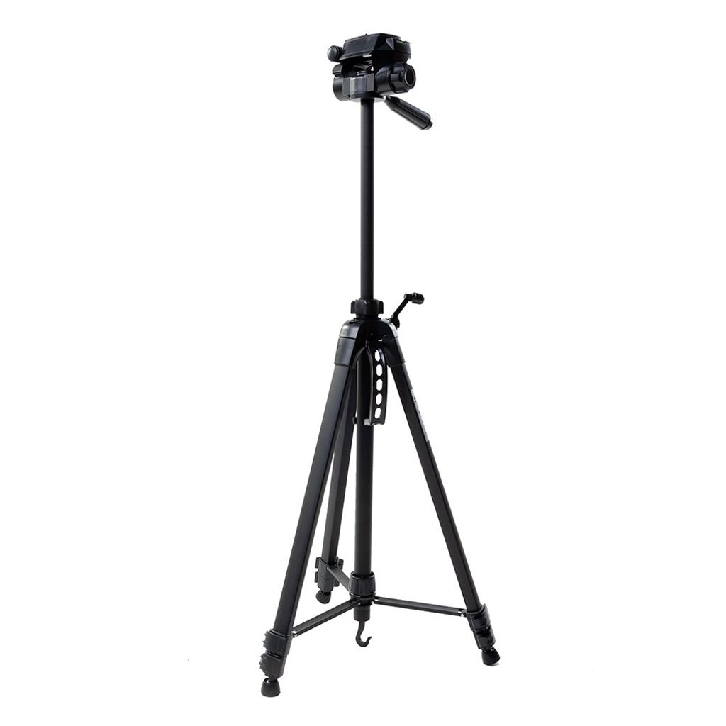 Enklare stativ för kamera med bärhandtag och 3-vägs huvud.