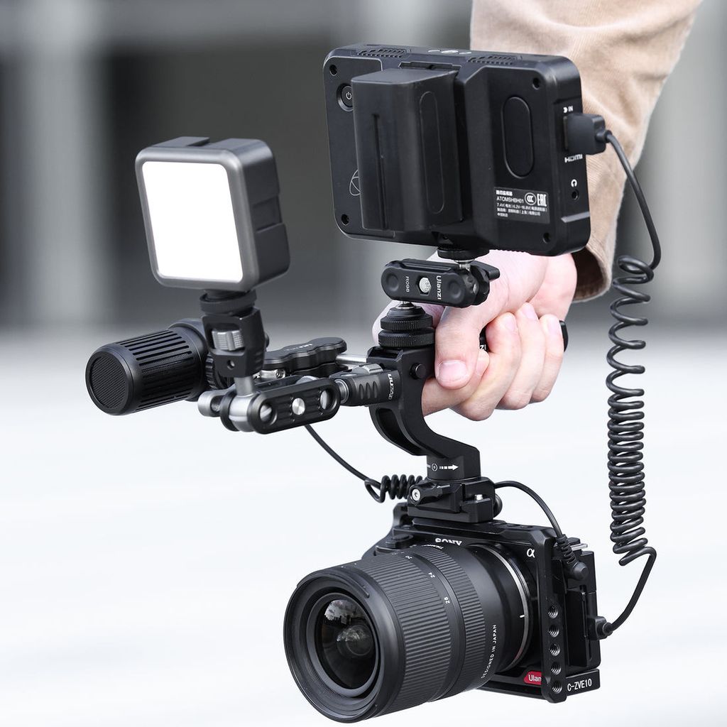 Produkten är försedd med en tillbehörssko (cold shoe) och flertalet 1/4"- och 3/4"-gängor samt 2st ARRI-gängor vilket ger stor flexibilitet och gör att du enkelt kan fästa tillbehör som mikrofon, skärm, LED-panel och flexiarm.