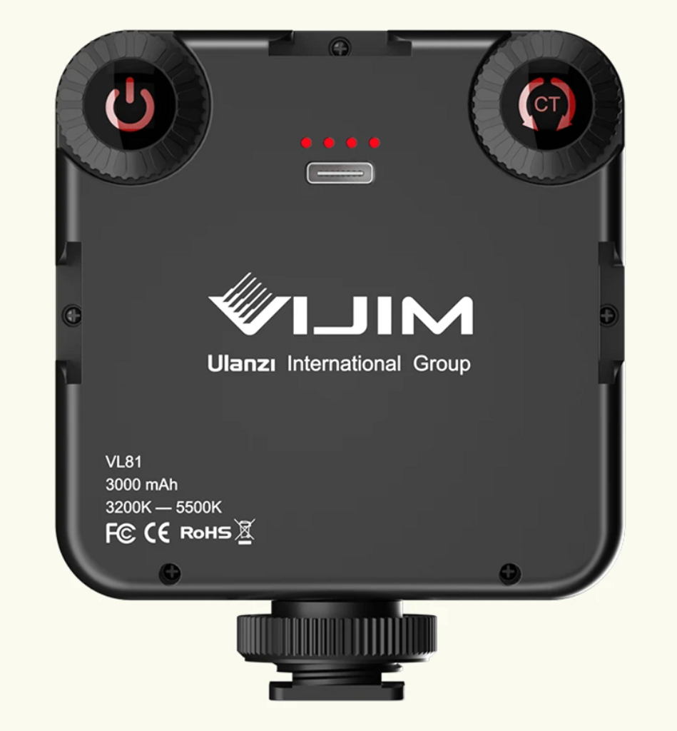 Liten LED-panel med Bi-color och inbyggt batteri. Videolampan kan monteras på kamera, mobilhållare eller cage. Perfekt extra ljus för din video.